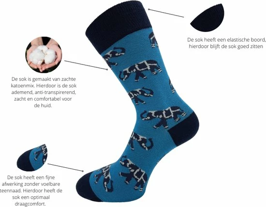 Set van 8 paar vrolijke SQOTTON sokken met diverse printjes. Deze sokken met print hebben een hoog draagcomfort en zijn daarom ideaal voor dagelijks gebruik. De sokken zijn gemaakt van een zachte katoenmix. Hierdoor zijn de sokken ademend, anti-transpirerend en comfortabel voor je huid. De sokken hebben een elastische boord waardoor de sokken goed blijven zitten. Daarbij hebben deze vrolijke sokken een handgekettelde afwerking zonder voelbare naad bovenop de tenen. Een afwerking zoals deze wordt ook wel naadloos genoemd. Deze naadloze sokken met print zijn unisex, geschikt voor zowel dames als heren. De sokken worden geleverd in een voordeelpak van 8 paar en zijn verkrijgbaar in de maten 36-40 en 41-46.