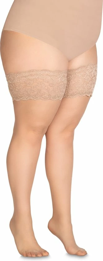 Annes dunne matte Hold Up Kousen Cecile 20 denier met extra brede 14 cm kanten rand, huidskleur XXL/XXXL