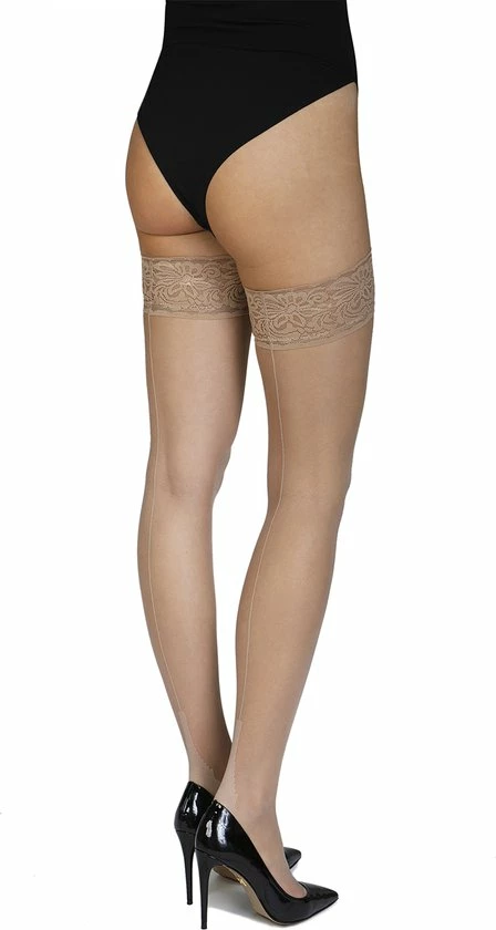 Calze Exclusieve 20DEN Luxe kousen met zelfophoudende rand en een fijne naad aan de achterzijde. Door de siliconen rand aan de bovenzijde zakt hij niet af. Zonder jarretel te dragen. Voel je sexy en zelfverzekerd!