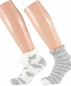 Binkie Socks 2 Paar Huissokken | Sokken Dames 37 42 | Huissokken Fluffy Blauw En Bruin | Slofsokken