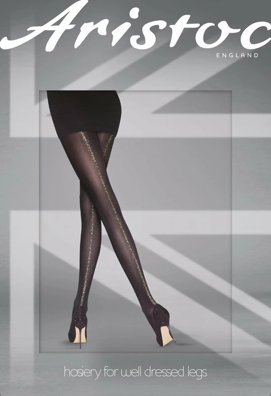 Een mooie luxe Gold Backseam Opaque panty in de kleur zwart uit de fantasie collectie van Aristoc. Deze dikke zwarte opaque panty heeft een mooie gouden naad op de achterkant van de panty en wordt geleverd in 2 maten met een maat bereik van 34 tot 48.