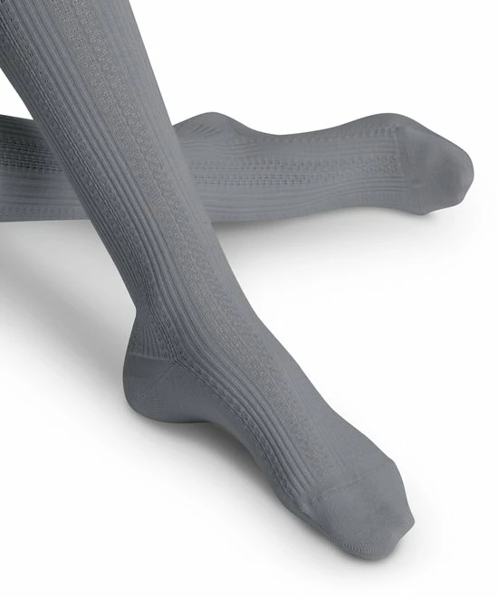 PRODUCTINFORMATIE: De serie FALKE Knit Caress maakt indruk met een klassieke, fijne ribstructuur in combinatie met een speels, romantisch kabelpatroon. Het gebruik van duurzaam en huidvriendelijk biologisch katoen in combinatie met zachte wol maakt het de ideale metgezel in het koude seizoen en het is comfortabel om te dragen. Het tijdloze design is verkrijgbaar als kousen, kniekousen, beenwarmers en maillots. De perfecte FALKE-pasvorm zorgt voor een comfortabele pasvorm aan de voet en het been. De serie wordt aangevuld met versterkte belastingszones die zorgen voor een optimale duurzaamheid.