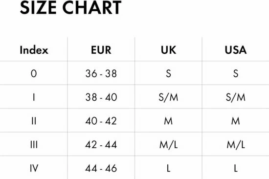 Modelnummer: 40511 verkrijgbaar in maten: S (DE 36-38), S-M (DE 38-40), M (DE 40-42), M-L (DE 42-44), L (DE 44-46)