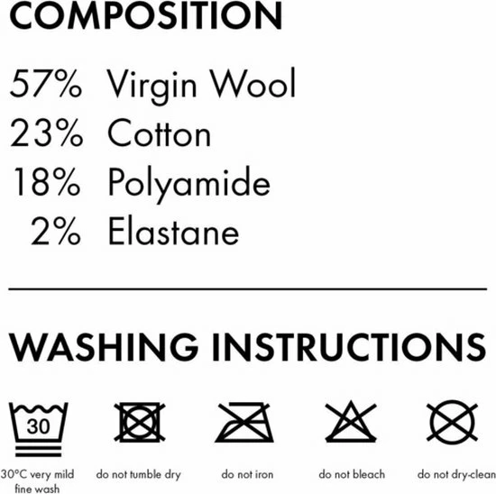 - deze sokken kunnen op 30°C in het wolwasprogramma gewassen worden