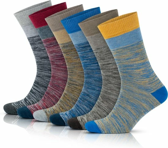 GoWith 6 paar katoenen herensokken, optisch effect, premium katoenen kleurrijke jurksokken, lange sokken met ronde hals, naadloze zakelijke sokken, model: 6017