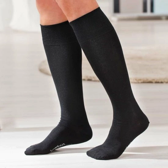 De nieuwe bamboe natuurvezel is superzacht, ademend en werkt op natuurlijke wijze antibacterieel. Door de speciale breitechniek en de zachte comfortabele boord geven de kousen steun en bevorderen ze de doorbloeding. De speciale naad voorkomt drukpunten. Mt. 35-38, 39-42, 43-46. Bij bestelling opgeven a.u.b.
