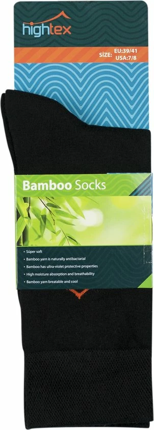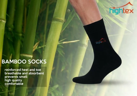 Hightex | bamboe speciaal voor wandelen en activiteiten | versterkte hielteen | naadloos wasbare zwarte herensokken