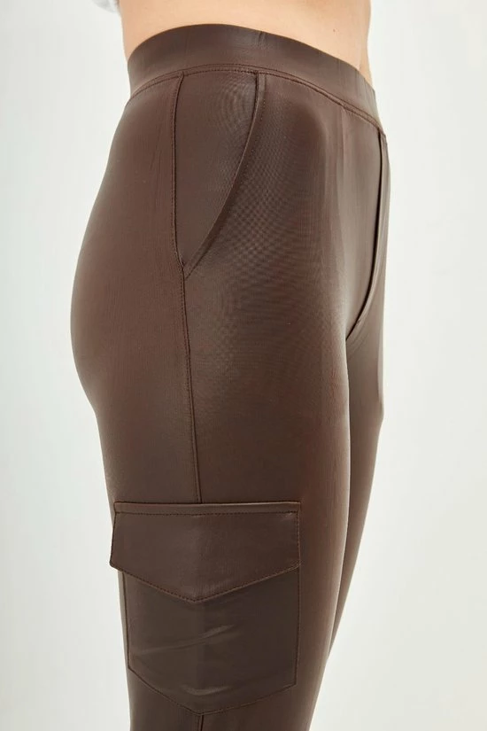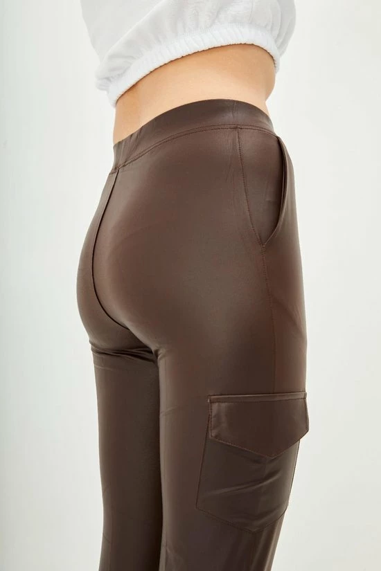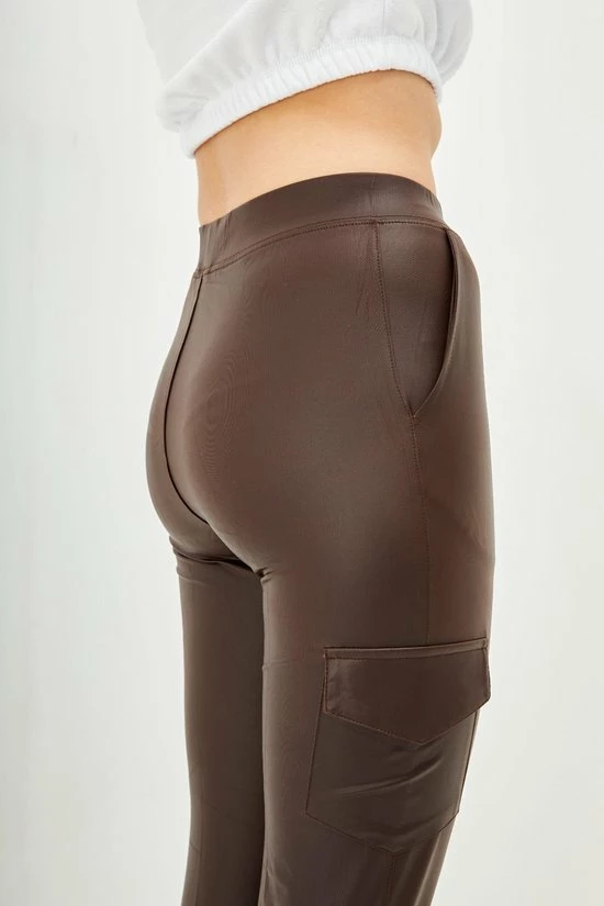 Blueberry Leggings- Legging Dames – Broek Skinny – Broek Dames Strech – Legging Lederlook-Legging Meisje – Legging Dames Volwassenen – High-Waist Dames Hoge Taille – Leggings – Push-Up – Up-Fit – Bruin Legging