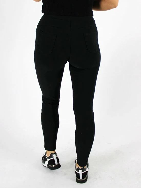 Deze tregging is zeer geschikt om zowel casual als chique te dragen. Door de steekzakken valt het model als een pantalon. De dikkere stretch stof samen met de ‘’gouden’’ details op de zakken zorgen voor een chique uitstraling. Maar in werkelijkheid zit het als een zeer comfortabele legging.