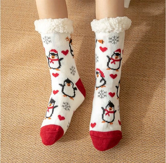 Kom helemaal in de kerststemming met deze fleece kerstsokken voor dames en heren! De huissokken hebben een heerlijk warme teddy fleece voering en zijn voorzien van een feestelijke kerstprint. Dankzij de anti-slip onderzijde houd je bovendien altijd voldoende grip. De kerstsokken zijn one size en geschikt voor schoenmaat 35 t/m 42.