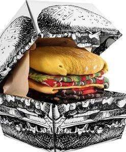 Hoogwaardige ingrediënten – Tomaten, uien, komkommers, kaas, rucola, sauzen, broodjes en vooral sappig rundvlees zijn genaaid op de hoogwaardige katoenen sokken. Het garen dat we gebruiken voor de productie heeft het OEKO-TEX-certificaat, een wereldwijd keurmerk voor de hoge kwaliteit van textielproducten. Daarom is de burger niet alleen een leuke gadget, maar ook sokken van topkwaliteit – veilig en comfortabel voor je voeten.
