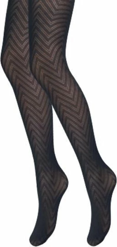 Stijlvolle damespanty met zigzag motief in de kleur zwart. Deze 40 denier panty is half glanzend en doorschijnend. De all-over zigzag print van deze panty staat leuk bij iedere look. Maak je outfit compleet met deze mooie panty. De panty is verkrijgbaar in diverse maten.