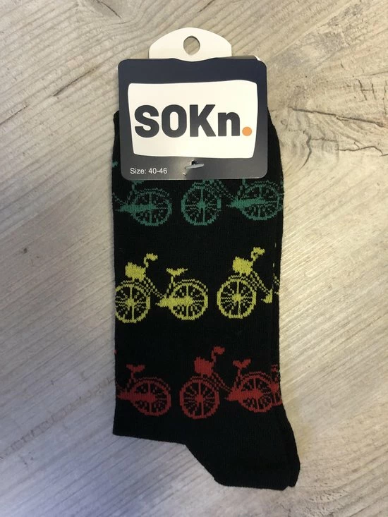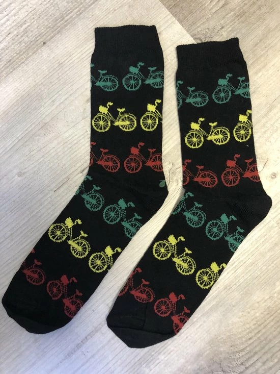 Leuke trendy sokken FIETS zwart met gekleurde fietsen