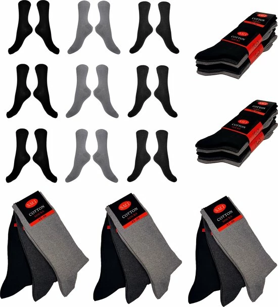 Je ontvangt 9 paar sokken in de kleuren zoals afgebeeld.