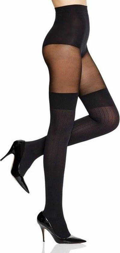 Deze Pretty Polly panty kenmerkt zich door het overknee effect. Dit effect wordt gecreëerd door de gebreide sok die tot net boven de knie komt. Draag deze panty in combinatie met lage of hoge laarzen en creëer zo een gelaagd effect.