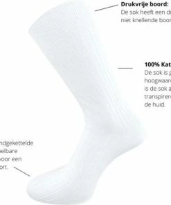 SQOTTON 10 Paar Sokken – Rib – 100% Katoen – Naadloos – Niet Knellende Sokken – Wit – Maat 47-50