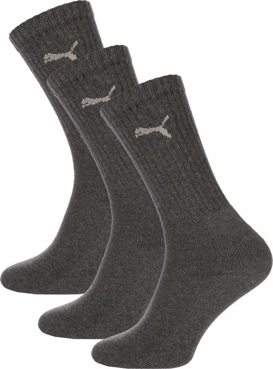 De klassieke PUMA sportsok 3-pack zijn de perfecte sportsokken. Het ribmotief aan de bovenzijde en extra versteviging bij de zool en tenen zorgen voor de perfecte fit. Het zachte katoen en de platte naden zorgen daarnaast voor een ultiem draagcomfort. De sokken zijn verkrijgbaar in de kleur antraciet.
