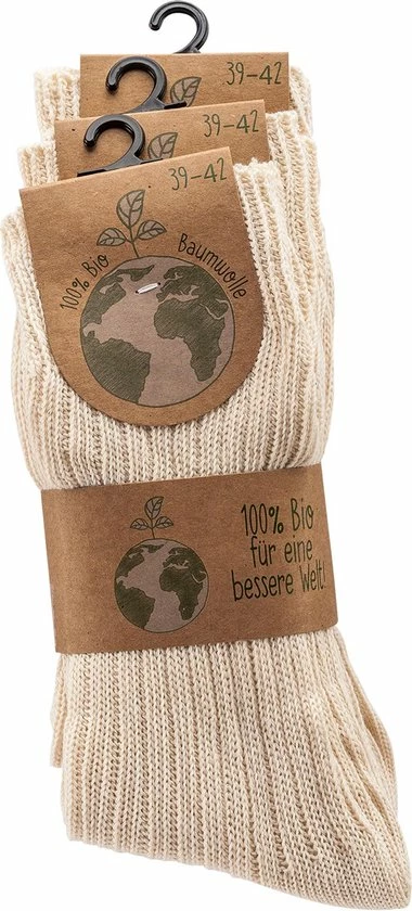 3 Paar biologisch katoenen sokken met een normale schachtlengte in een zogenoemde natuurkleur.