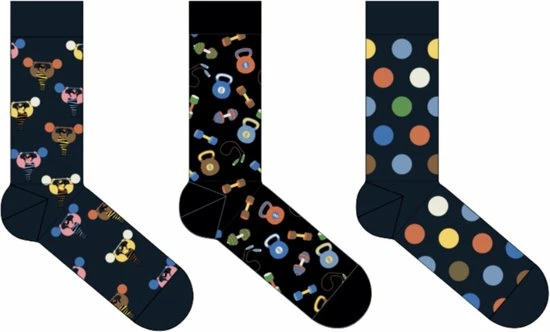 Teckel herensokken Sports limited edition met gewichtheffen, sportattributen, stippen.