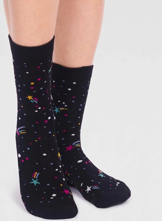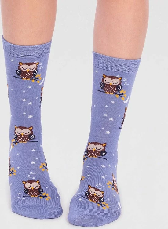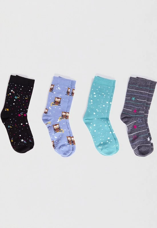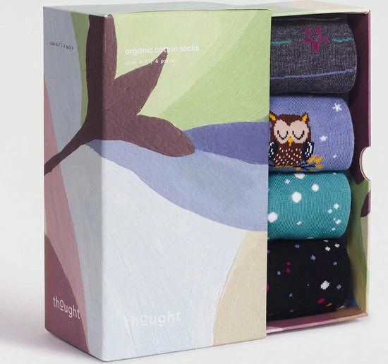 Damessokken giftbox – night In deze luxe sokken giftbox zitten 4 paar bamboe damessokken met prints van uilen en sterren. De giftbox neemt je mee in de nacht. Een mooie box voor jezelf of om een ander cadeau te geven.