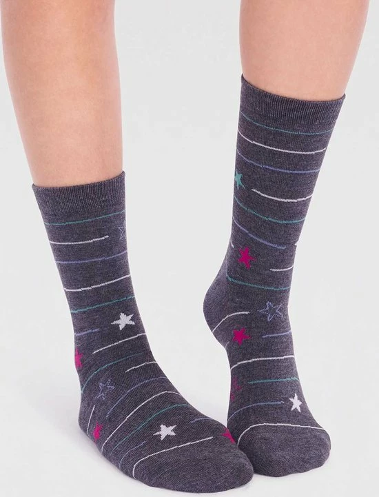 De damessokken zijn gemaakt van bamboe met biologisch katoen. Deze duurzame mix zorgt voor sokken met een hoog draagcomfort. De sokken voelen zacht aan, zijn sterk en hebben een hoog ademend vermogen. Deze sokken houden je voeten droog en fris. Daarnaast zijn deze damessokken machinaal met een flat lock machine afgestikt. We spreken dan ook wel van naadloze sokken (platte naden / hand-linking) Hierdoor zit de sok nog eens extra fijn bij je tenen.